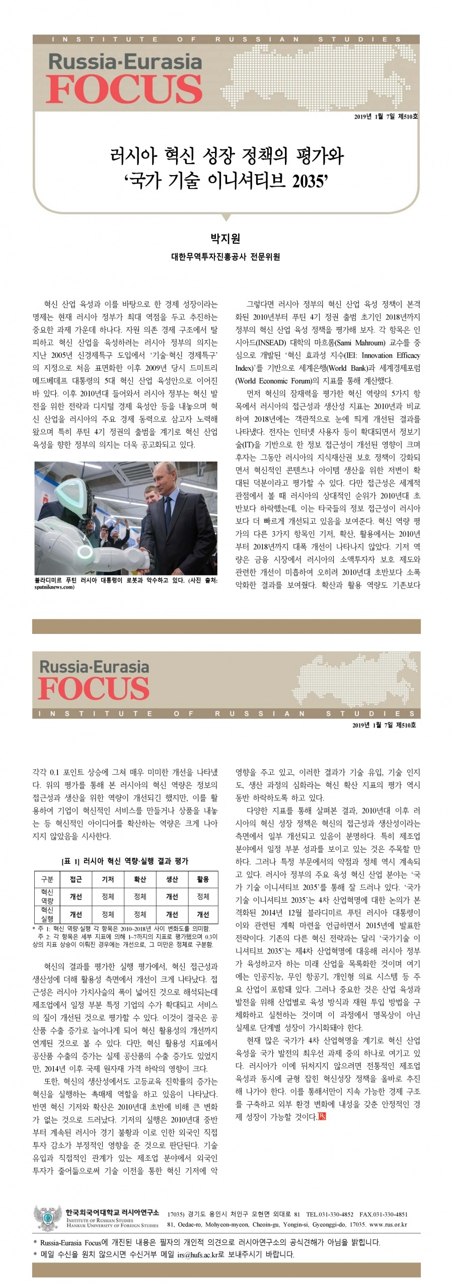 제510호 러시아 혁신 성장 정책의 평가와 ‘국가 기술 이니셔티브 2035’