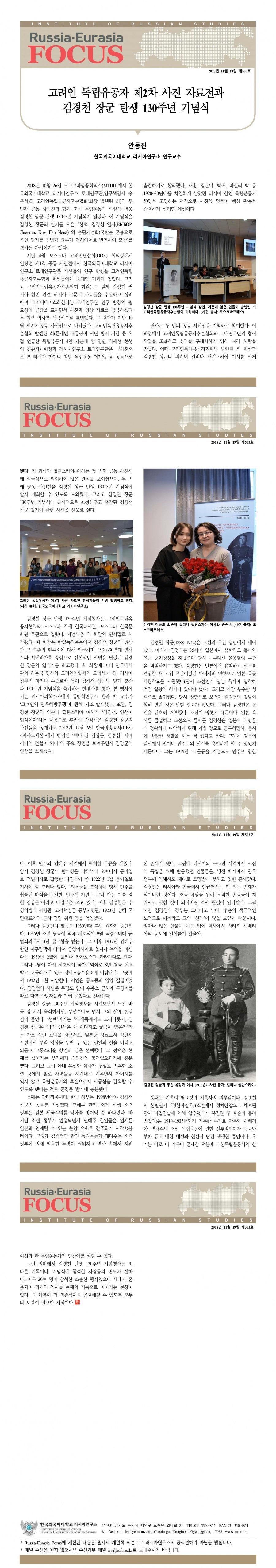 제503호 고려인 독립유공자 제2차 사진 자료전과 김경천 장군 탄생 130주년 기념식