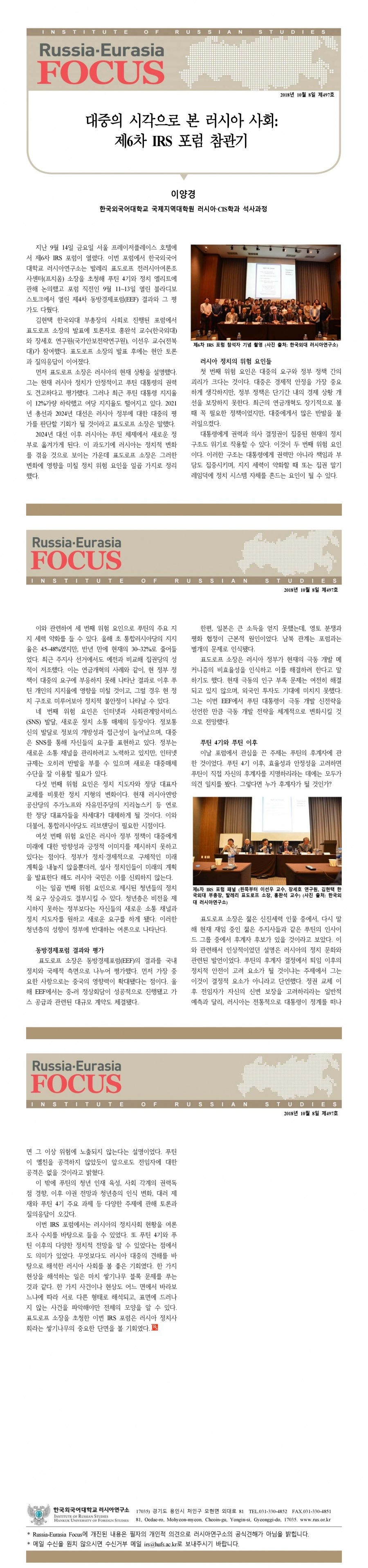 제497호 대중의 시각으로 본 러시아 사회, 제 6차 IRS 포럼 참관기