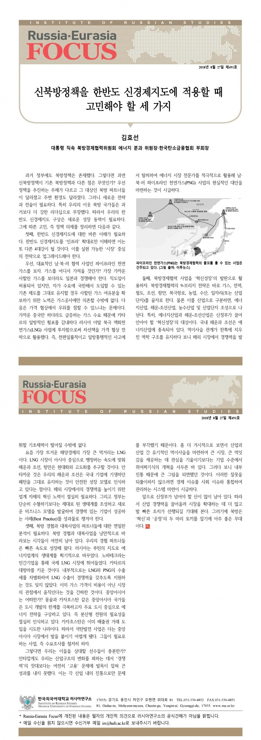제 491호 신북방정책을 한반도 신경제지도에 적용할 때 고민해야 할 세 가지