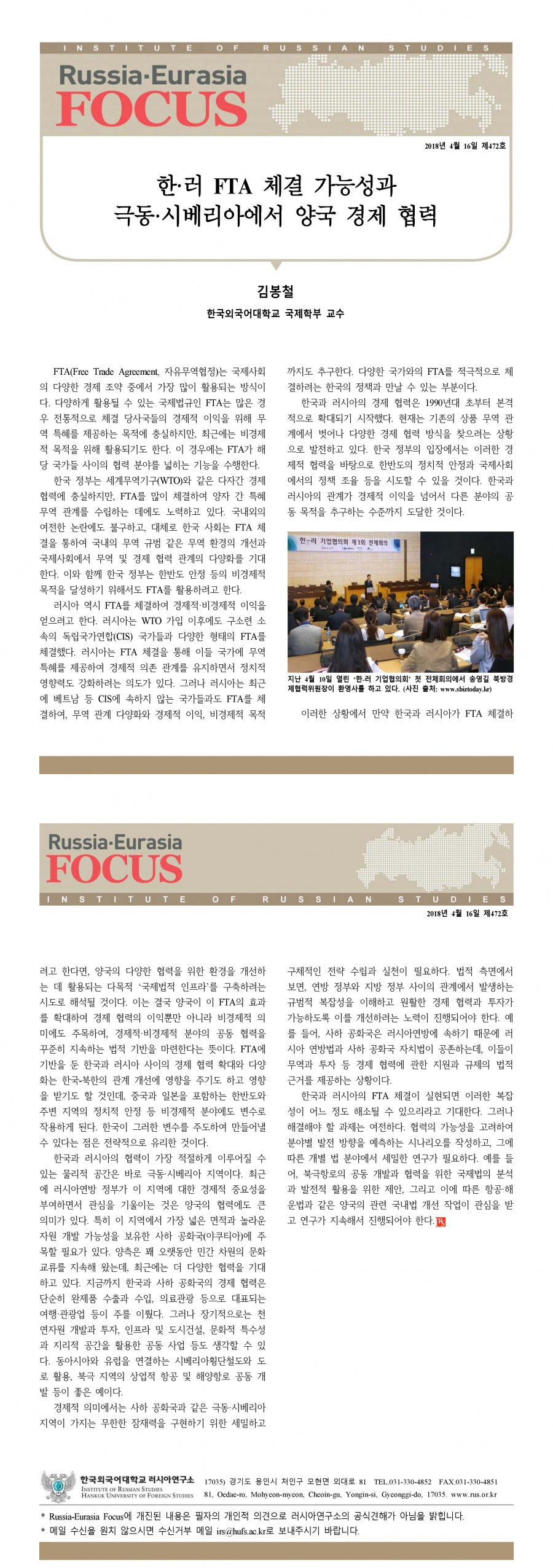 제472호 한러 FTA 체결 가능성과 극동시베리아에서 양국 경제 협력