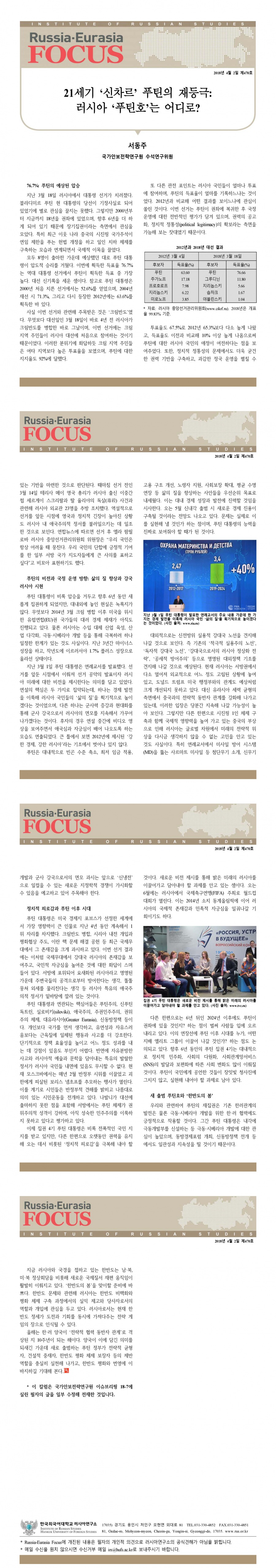 제470호 21세기 신차르 푸틴의 재등극: 러시아 푸틴호는 어디로?