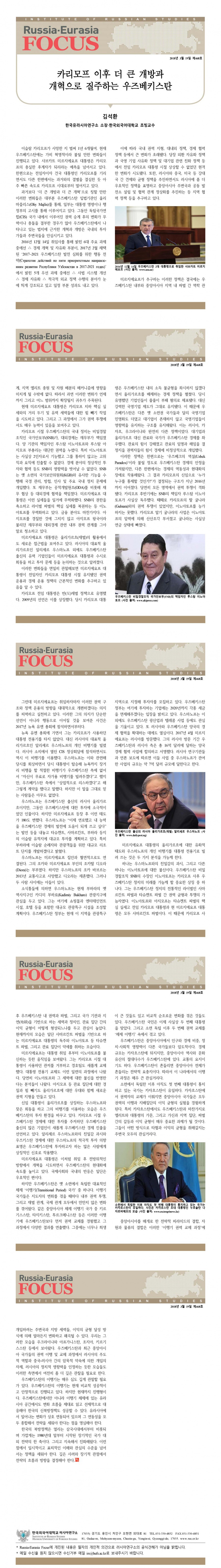 제468호 카리모프 이후 더 큰 개방과 개혁으로 질주하는 우주베키스탄