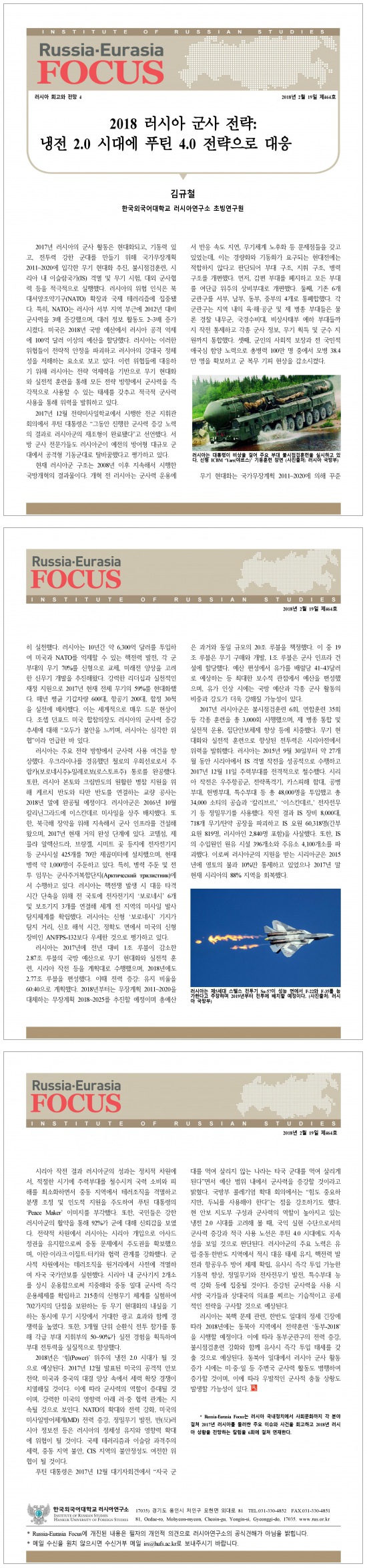 제464호 2018 러시아 군사 전략: 냉전 2.0시대에 푸틴 4.0전략으로 대응