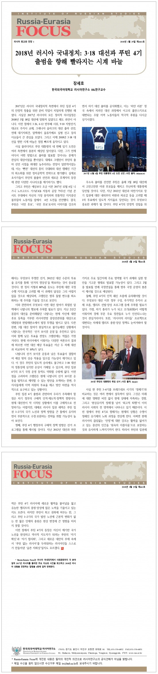 제461호 2018년 러시아 국내정치: 3·18 대선과 푸틴 4기 출범을 향해 빨라지는 시계 바늘