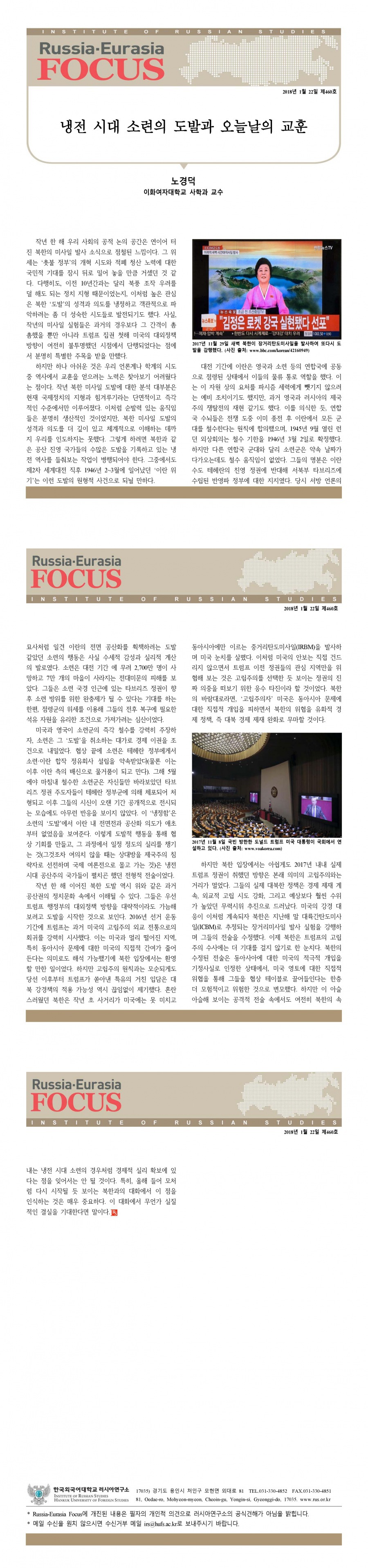 제460호 냉전 시대 소련의 도발과 오늘날의 교훈