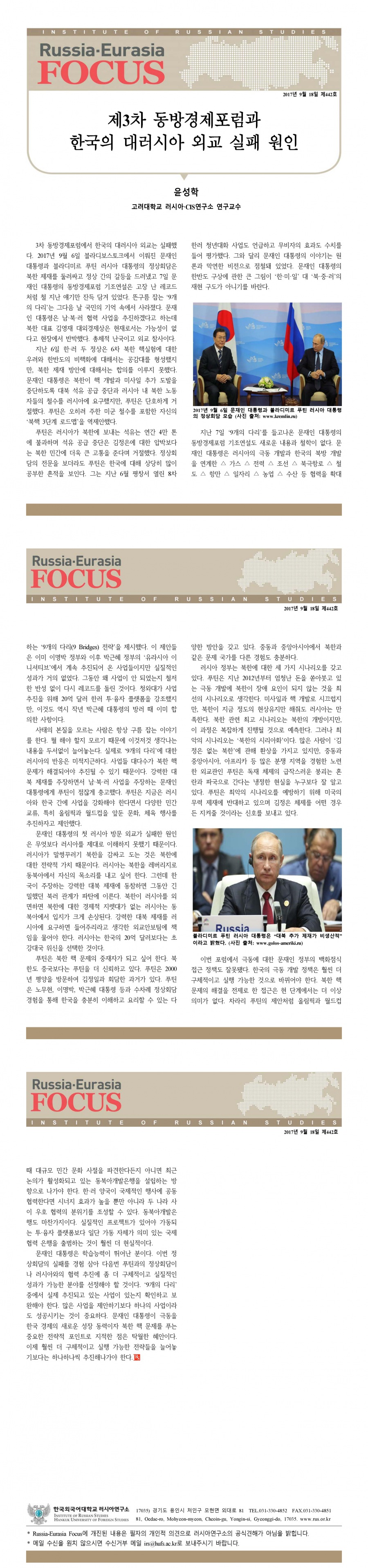 제442호 제3차 동방경제포럼과 한국의 대러시아 외교 실패 원인