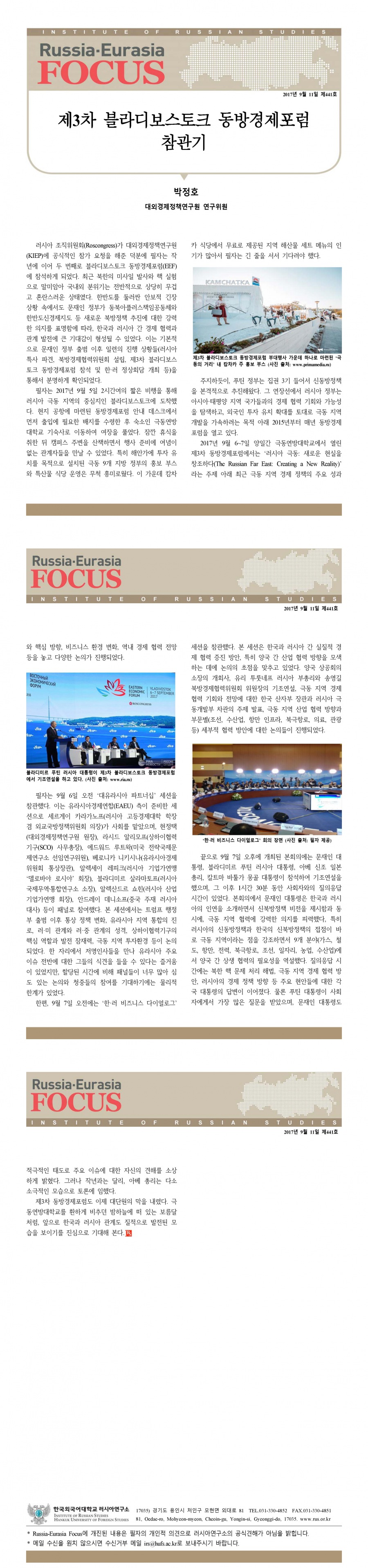 제441호 제3차 블라디보스토크 동방경제포럼 참관기