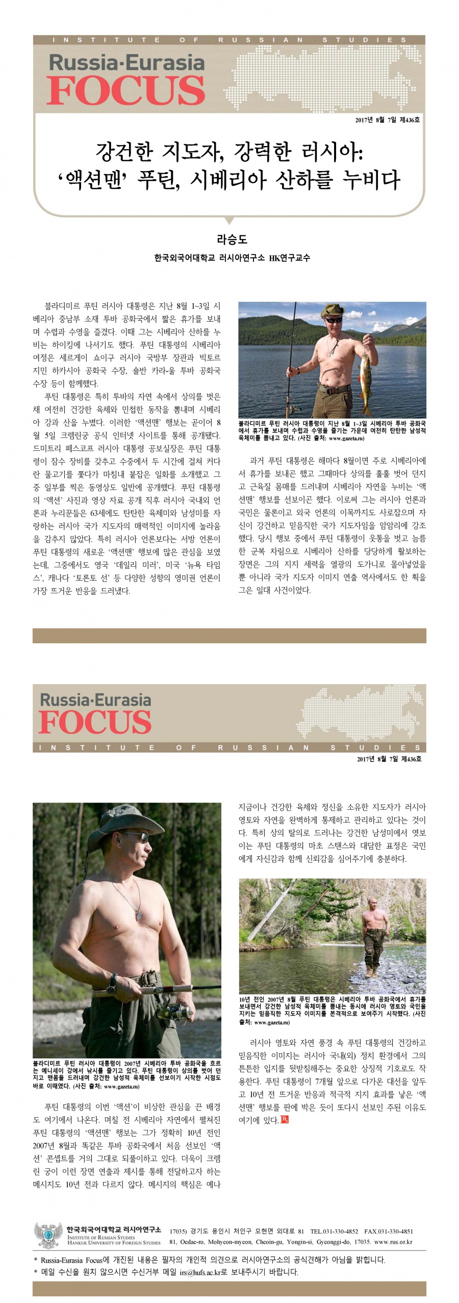 제436호 강건한 지도자, 강력한 러시아: ‘액션맨’ 푸틴, 시베리아 산하를 누비다