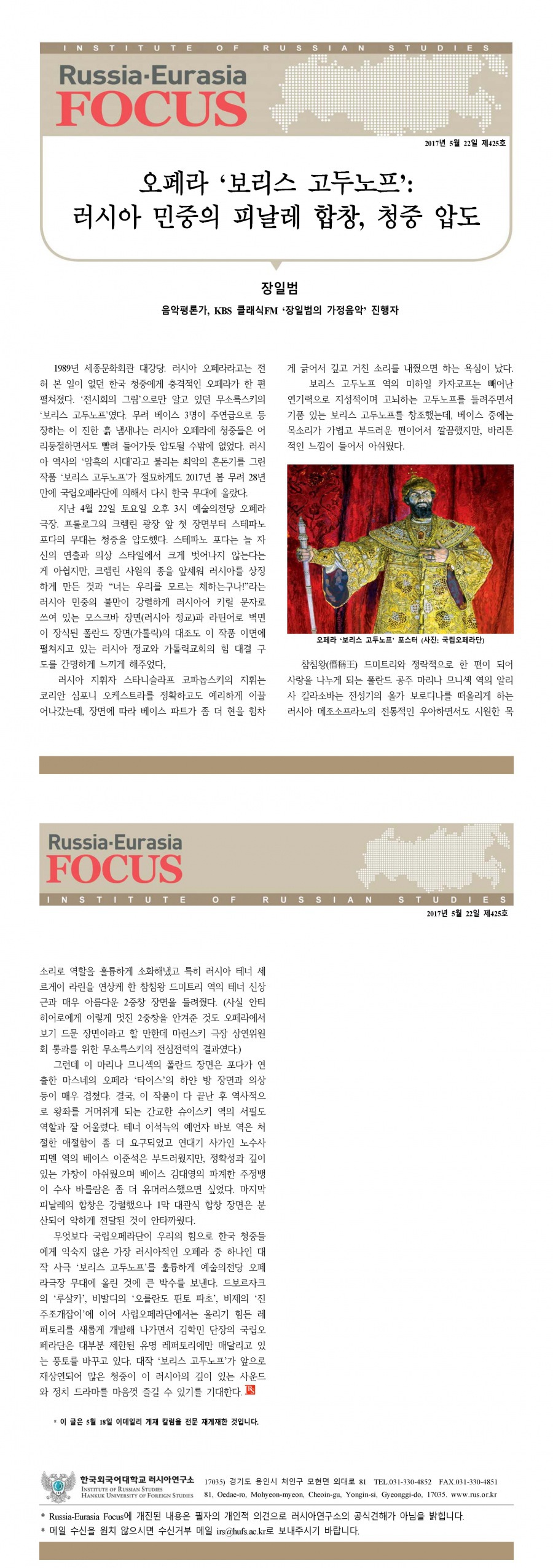 제425호 오페라 ‘보리스 고두노프’: 러시아 민중의 피날레 합창, 청중 압도