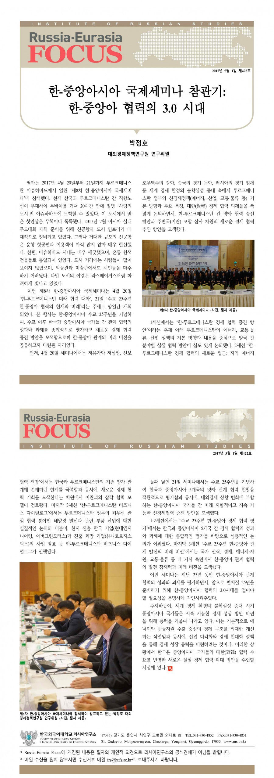 제422호 한-중앙아시아 국제세미나 참관기: 한-중앙아 협력의 3.0 시대