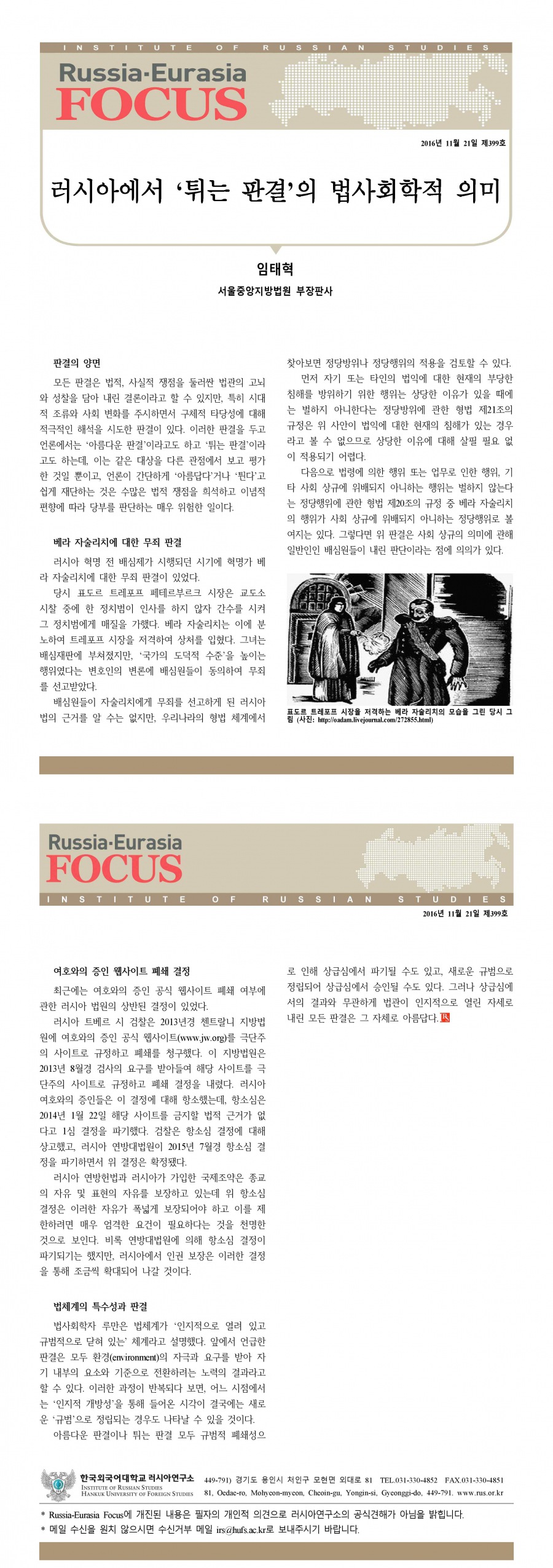 제399호 러시아에서 ‘튀는 판결’의 법사회학적 의미