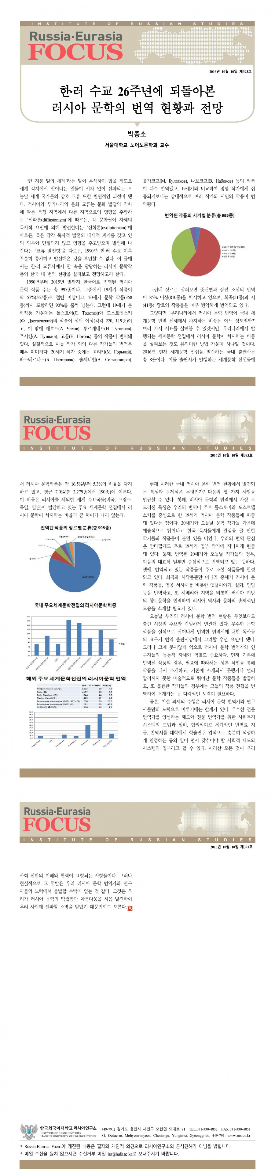 제393호 한․러 수교 26주년에 되돌아본 러시아 문학의 번역 현황과 전망
