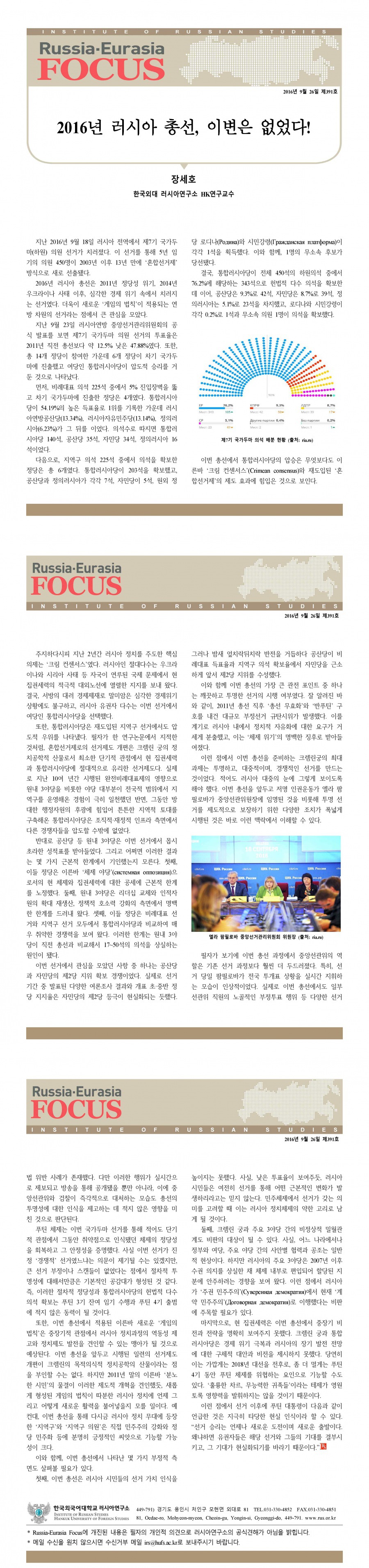 제391호 2016년 러시아 총선, 이변은 없었다!