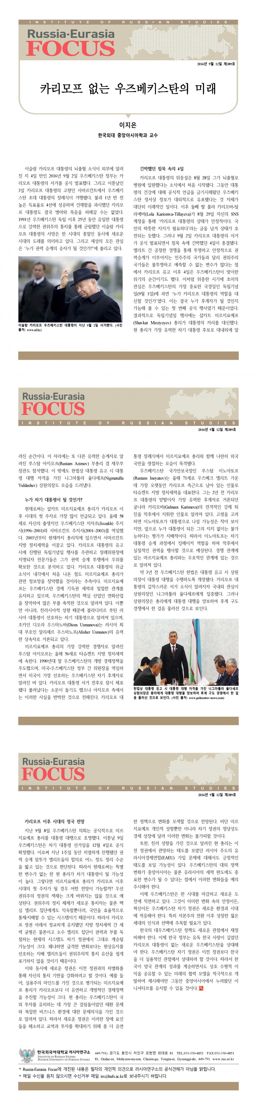 제389호 카리모프 없는 우즈베키스탄의 미래