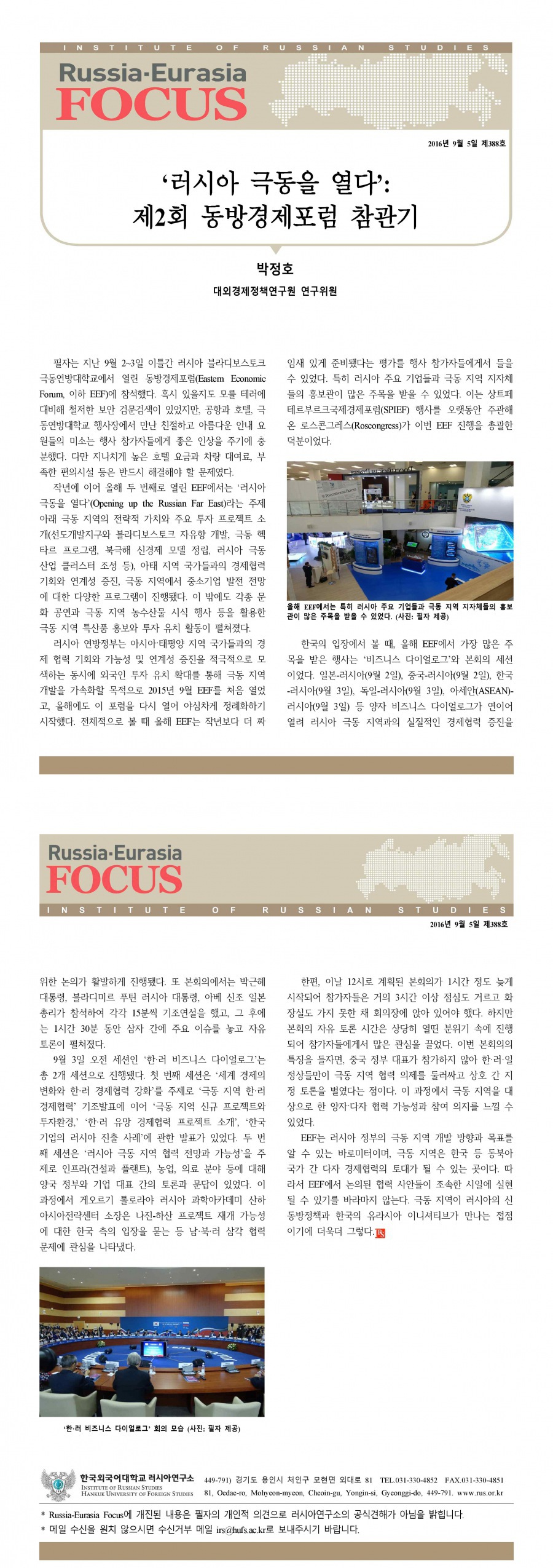 제388호 ‘러시아 극동을 열다’: 제2회 동방경제포럼 참관기