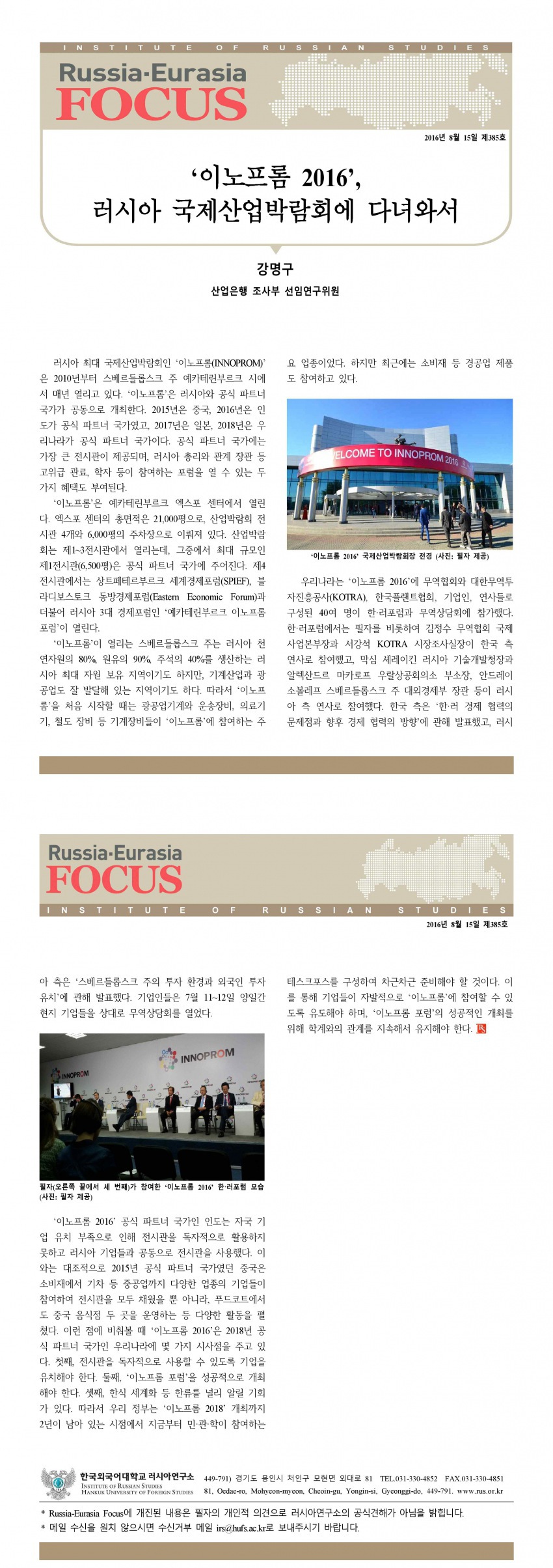 제385호 ‘이노프롬 2016’, 러시아 국제산업박람회에 다녀와서