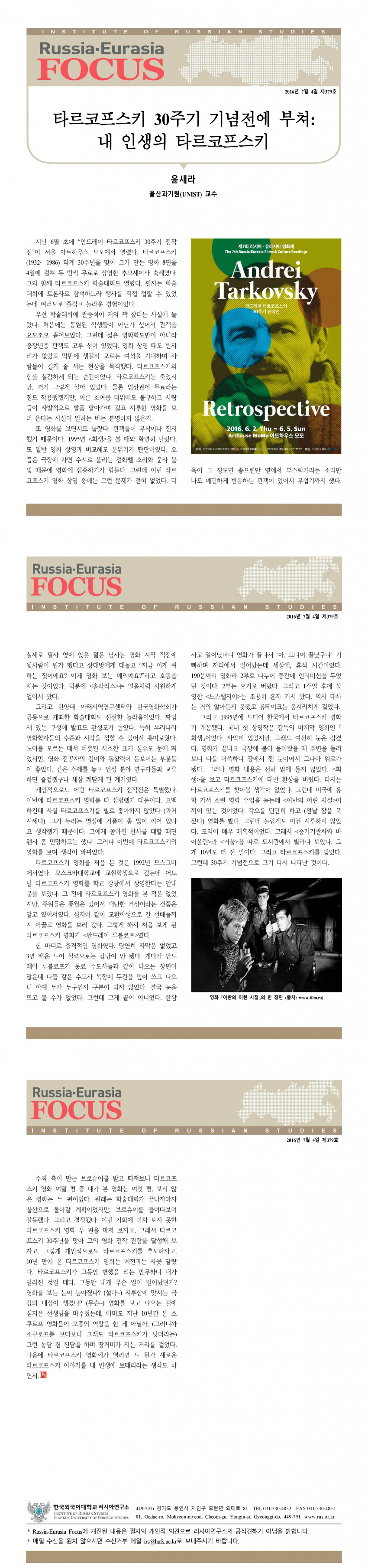 제379호 타르코프스키 30주기 기념전에 부쳐:내 인생의 타르코프스키