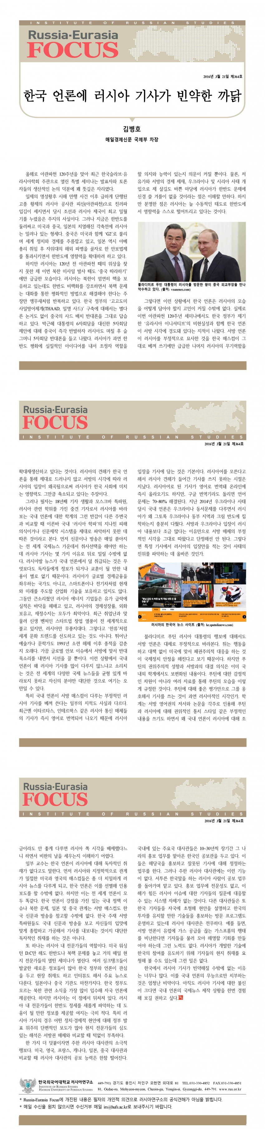 제364호 한국 언론에 러시아 기사가 빈약한 까닭