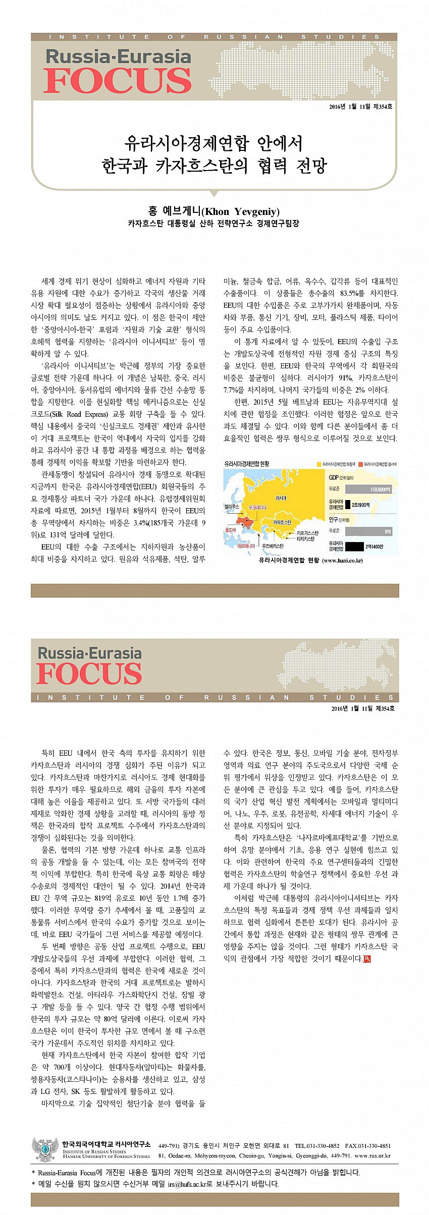 제354호 유라시아경제연합 안에서 한국과 카자흐스탄의 협력 전망