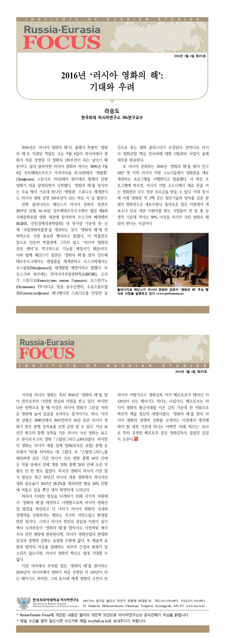 제353호 2016년 ‘러시아 영화의 해’: 기대와 우려