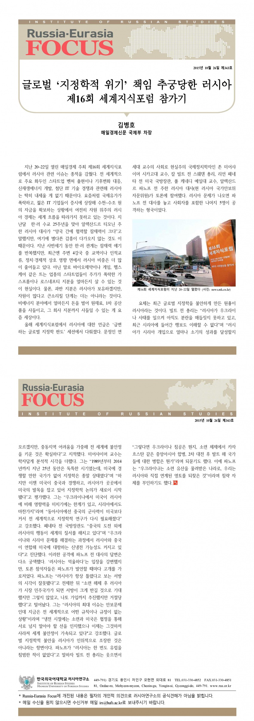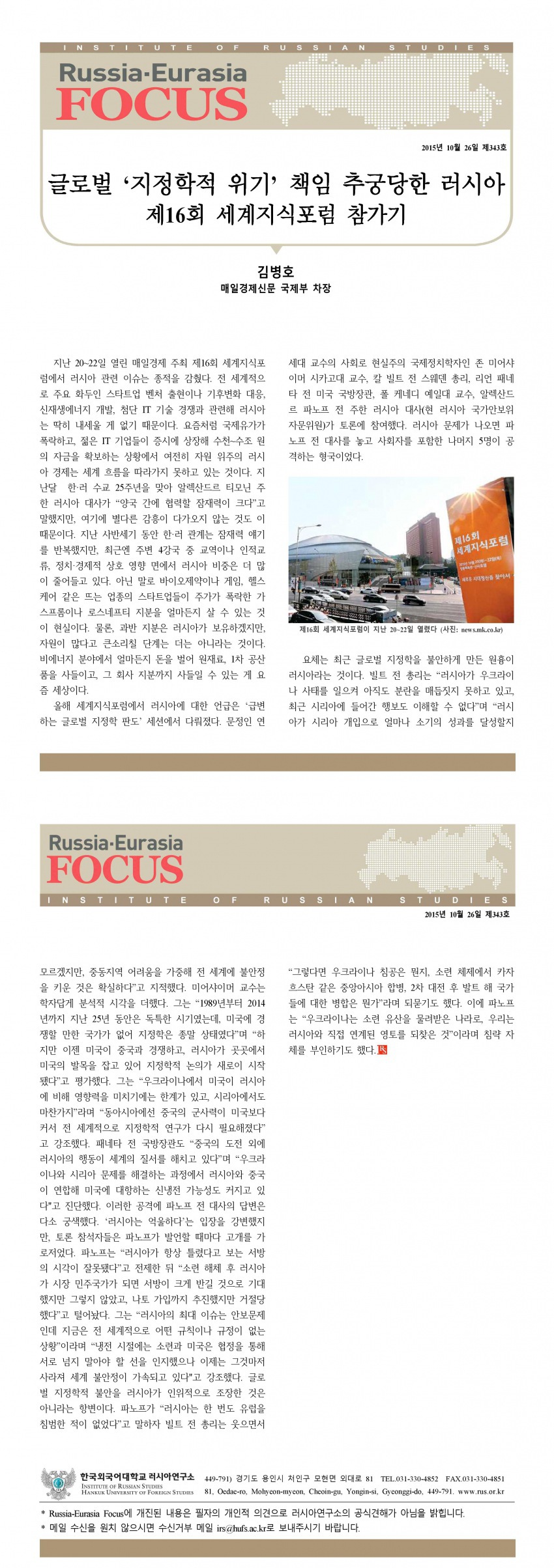 제343호 글로벌 ‘지정학적 위기’ 책임 추궁당한 러시아 제16회 세계지식포럼 참가기