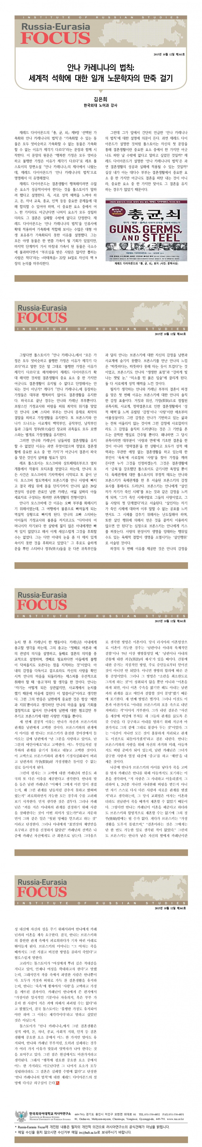 제341호 안나 카레니나의 법칙: 세계적 석학에 대한 일개 노문학자의 딴죽 걸기
