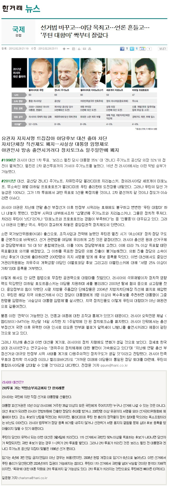 [언론보도]러시아, 국외 선거감시단 줄줄이 입국-한겨레(2012.3.1)