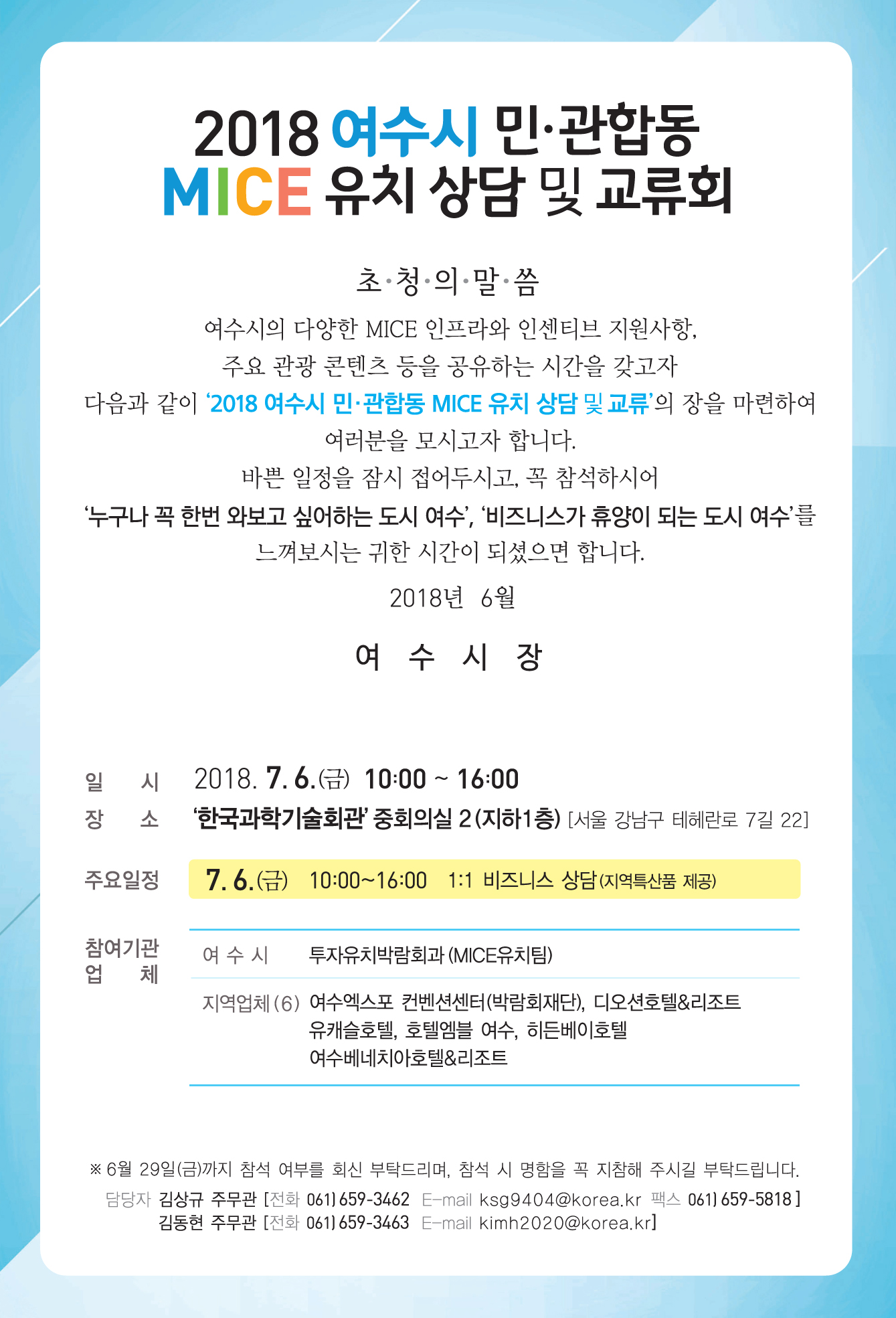 2018 여수시 민관합동 MICE 유치 상담 및 교류회 행사에 초청합니다