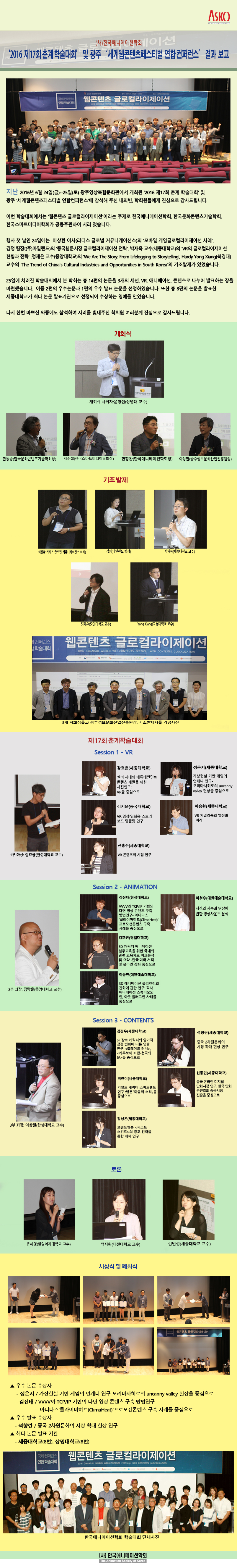 '2016 제17회 춘계 학술대회’ 및 광주 ‘세계웹콘텐츠페스티벌 연합 컨퍼런스’ 결과 보고