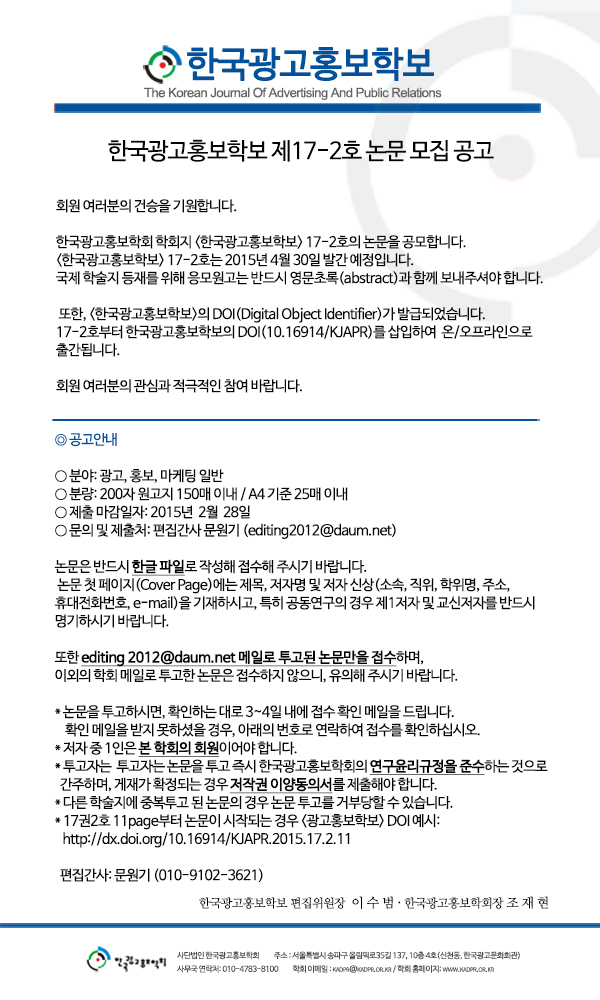 [KADPR] <광고홍보학보> 제 17-2호 논문 모집 공고
