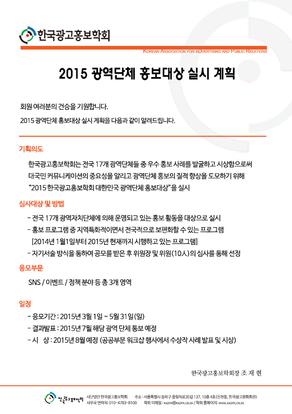 [KADPR] 2015 광역단체 홍보대상 실시 계획