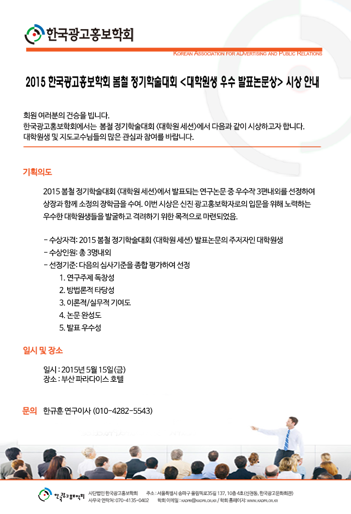 [KADPR] 2015 한국광고홍보학회 봄철 정기학술대회 <대학원생 우수 발표논문상> 시상 안내
