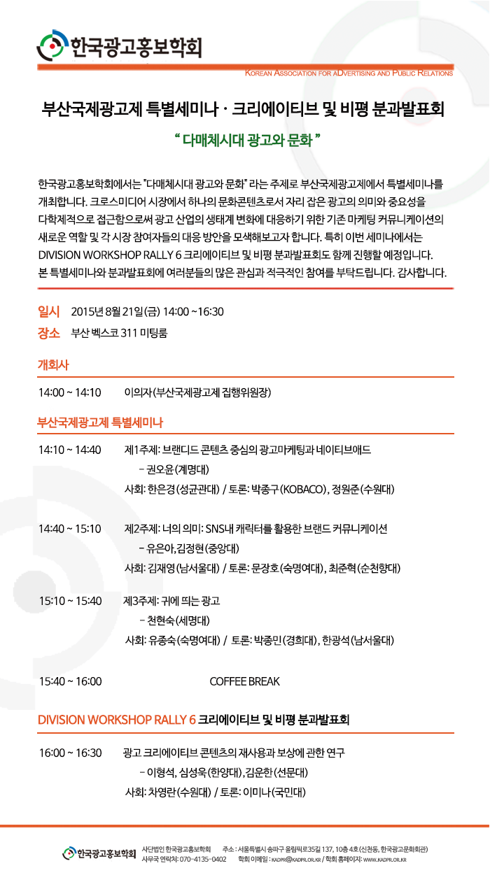 [KADPR] 부산국제광고제 특별세미나 일정 및 공모 결과