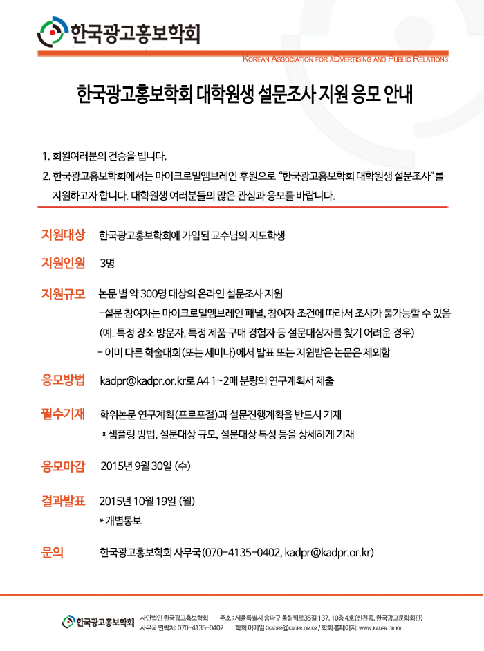 [KADPR] 한국광고홍보학회 대학원생 설문조사 지원 응모 안내