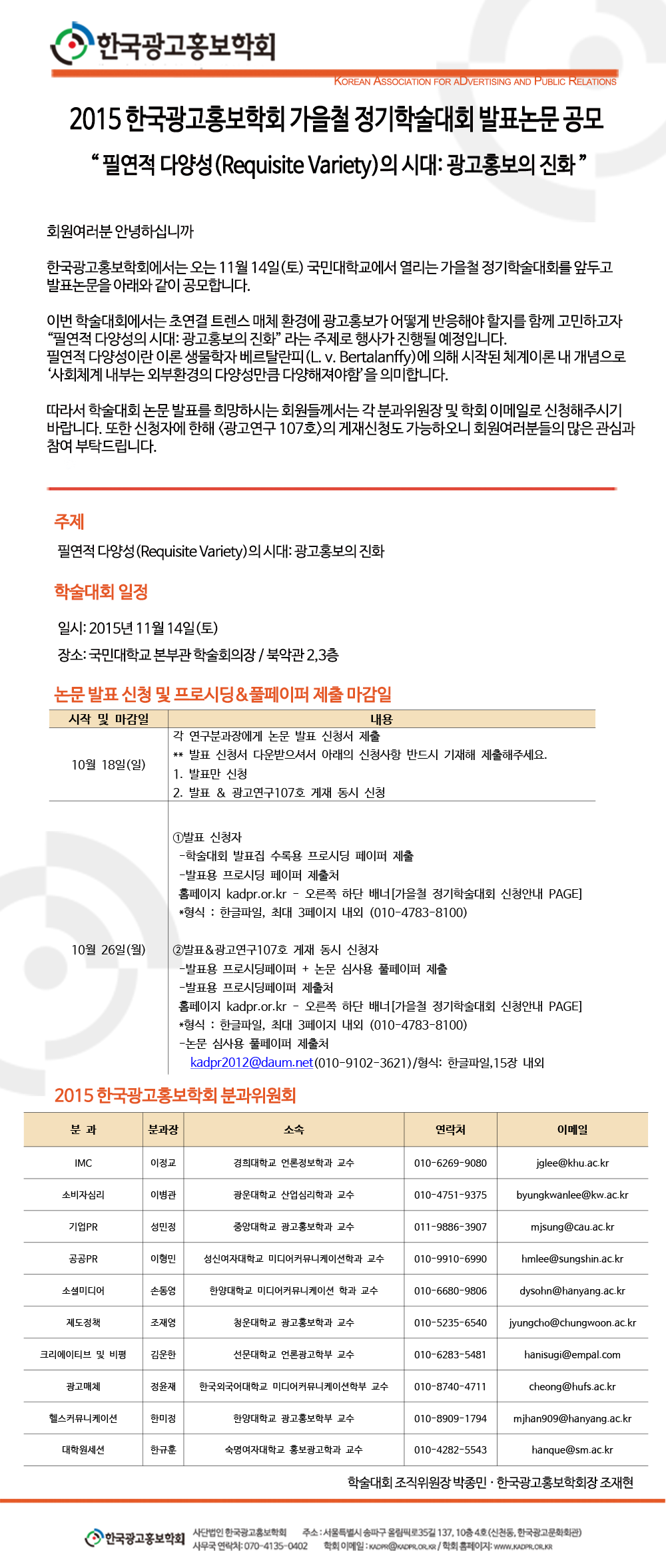 [KADPR] 2015 한국광고홍보학회 가을철 정기학술대회 발표 논문 공모