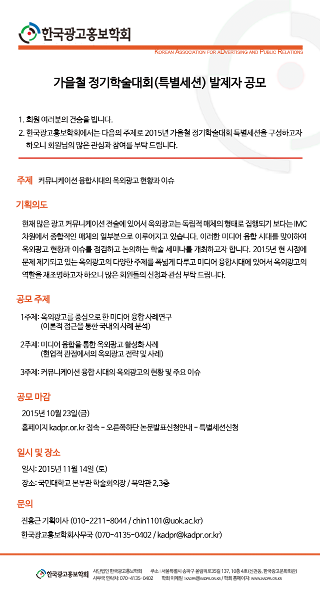 [KADPR] 가을철 정기학술대회 특별세션(커뮤니케이션 융합시대의 옥외광고 현황과 이슈) 발제자 공모 4