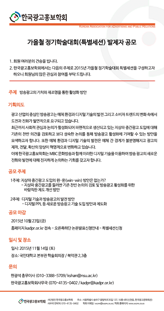 [KADPR] 가을철 정기학술대회 특별세션(방송광고의 가치와 재조명을 통한 활성화 방안) 발제자 공모 6