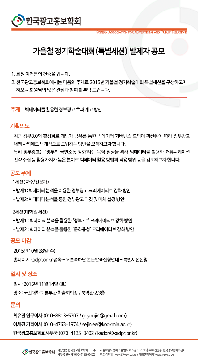 [KADPR] 가을철 정기학술대회 특별세션(빅데이터를 활용한 정부광고 효과 제고 방안) 발제자 공모 8