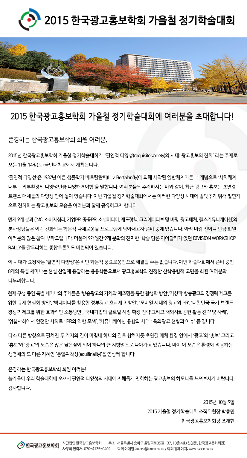[KADPR] 2015 가을철 정기학술대회 초대의 글