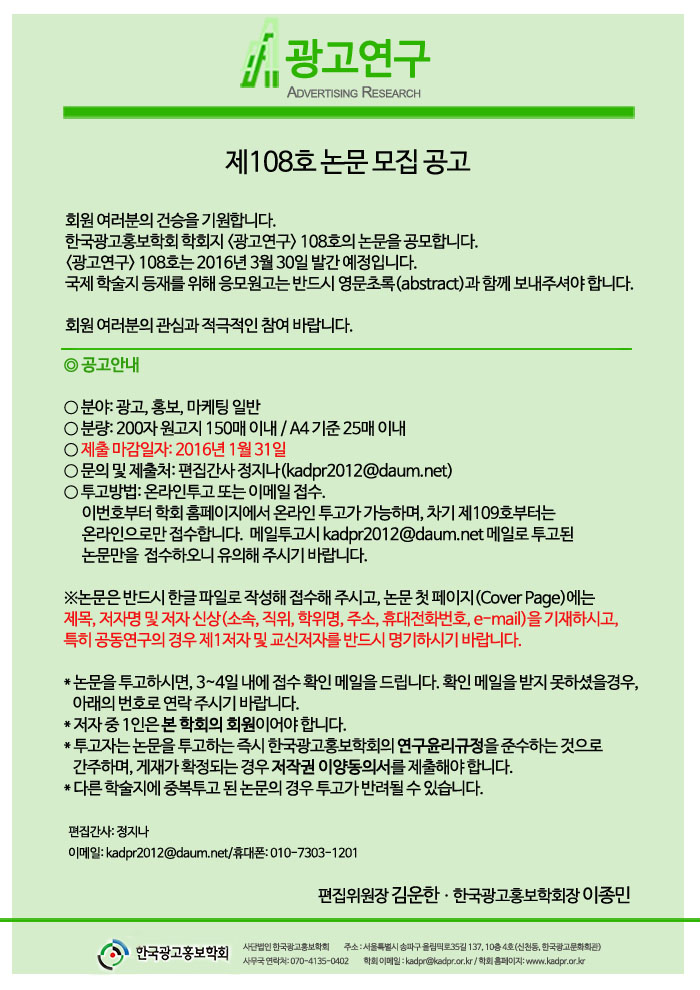 [KADPR] <광고연구> 제108호 논문 모집 공고