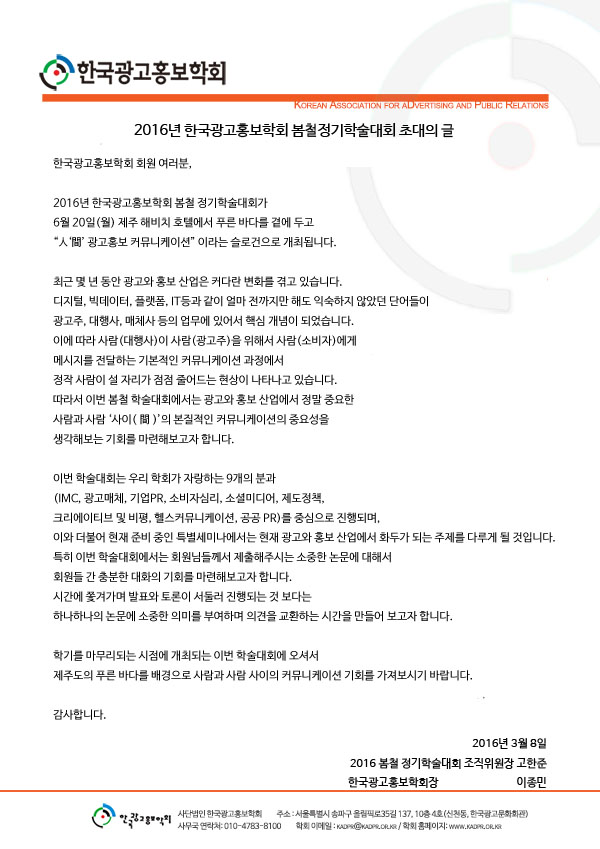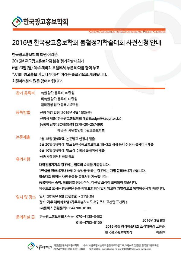 [KADPR} 2016 한국광고홍보학회 봄철 정기학술대회 안내