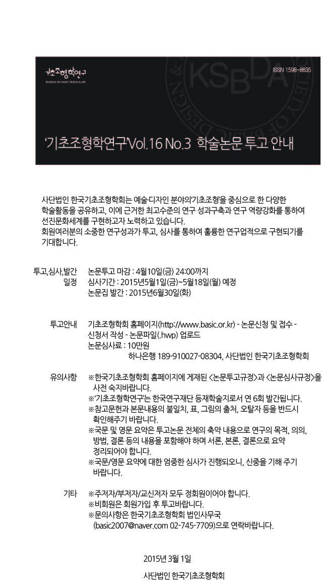 KSBDA '기초조형학연구' 16권 3호(통권69호) 논문투고 안내
