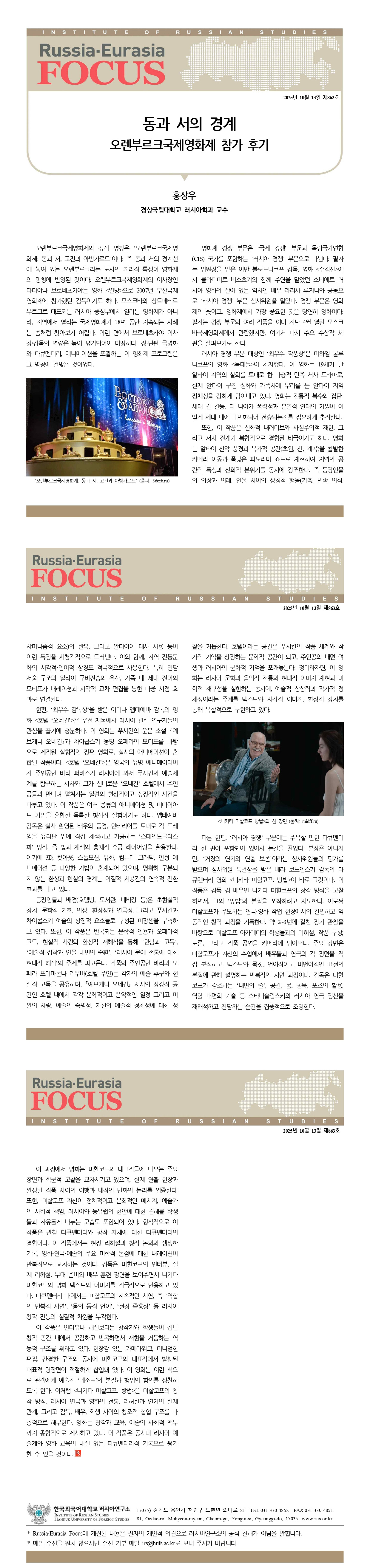 제863호 동과 서의 경계: 오렌부르크국제영화제 참가 후기