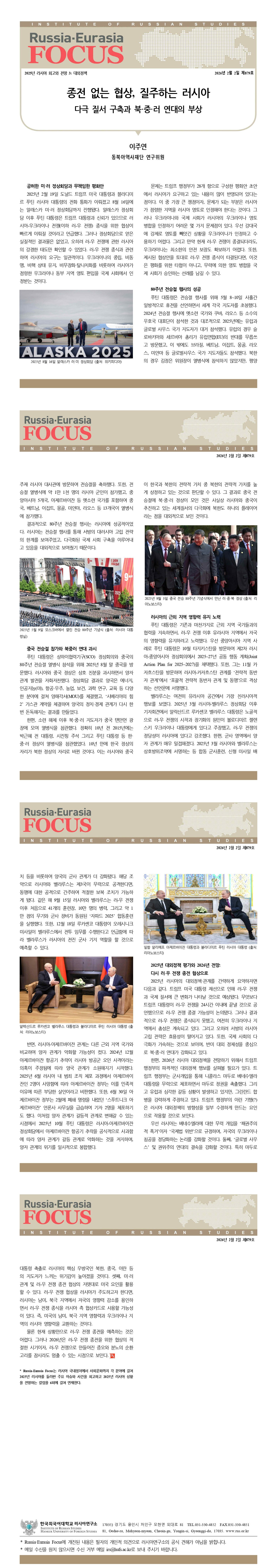 제879호 종전 없는 협상, 질주하는 러시아: 다극 질서 구축과 북·중·러 연대의 부상