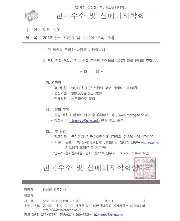 [수소학회]2012년도 연회비 및 논문집 구독 안내