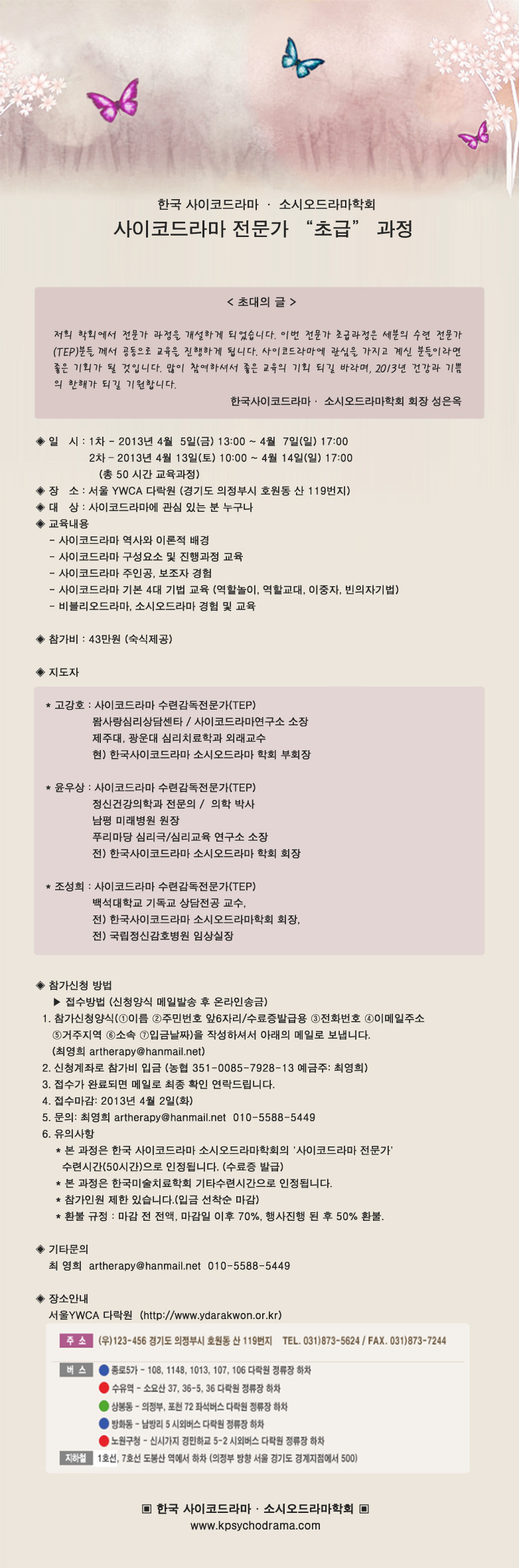 사이코드라마 전문가 초급과정 안내