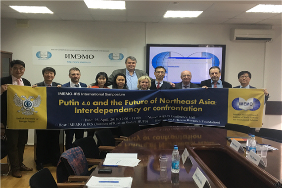2018년 4월 23(러시아연구소는 러시아 모스크바 소재 세계경제및국제관계연구소’(IMEMO) 7층 세미나실에서 푸틴 4.0과 동북아시아의 미래상호의존과 대립:(Putin 4.0 and the Future of Northeast Asia: Interdependency and Confrontation)이라는 주제로 심포지움을 개최했다이번 심포지움은 한국외대 러시아연구소와 모스크바 IMEMO가 공동으로 제작한 <러시아폴리시리뷰>의 발간을 기념하고 두 연구소의 미래지향적 협력관계를 구축하고자 마련됐다.