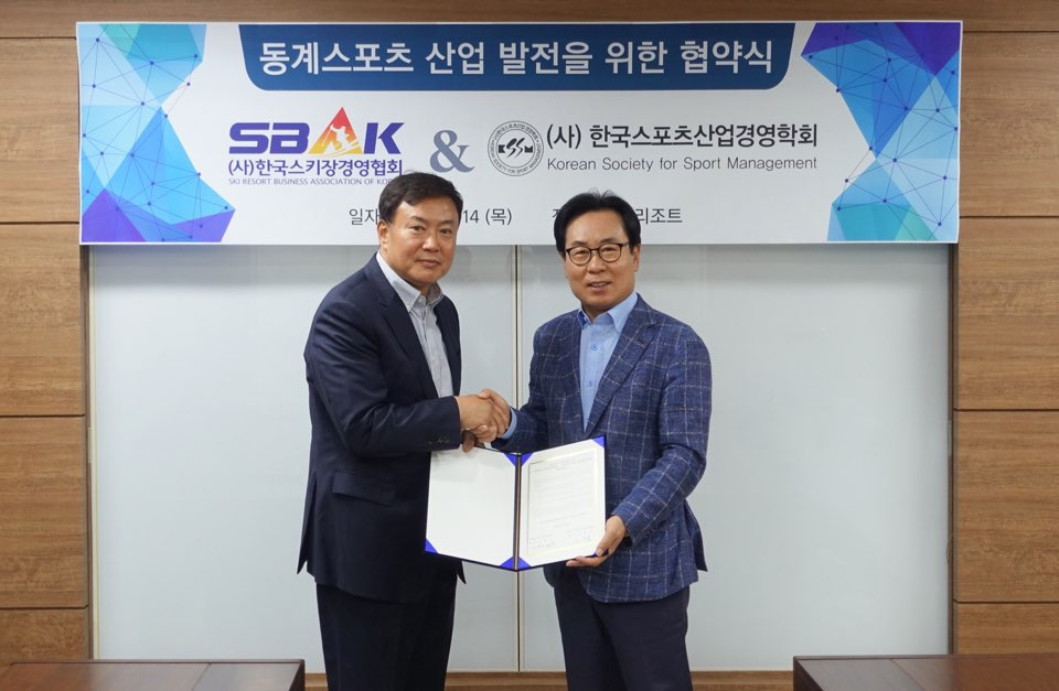 2018년 6월 14일 (사)한국스키장경영협회와 (사)한국스포츠산업경영학회 간 동계스포츠 산업 발전을 위한 업무협약식이 있었습니다.