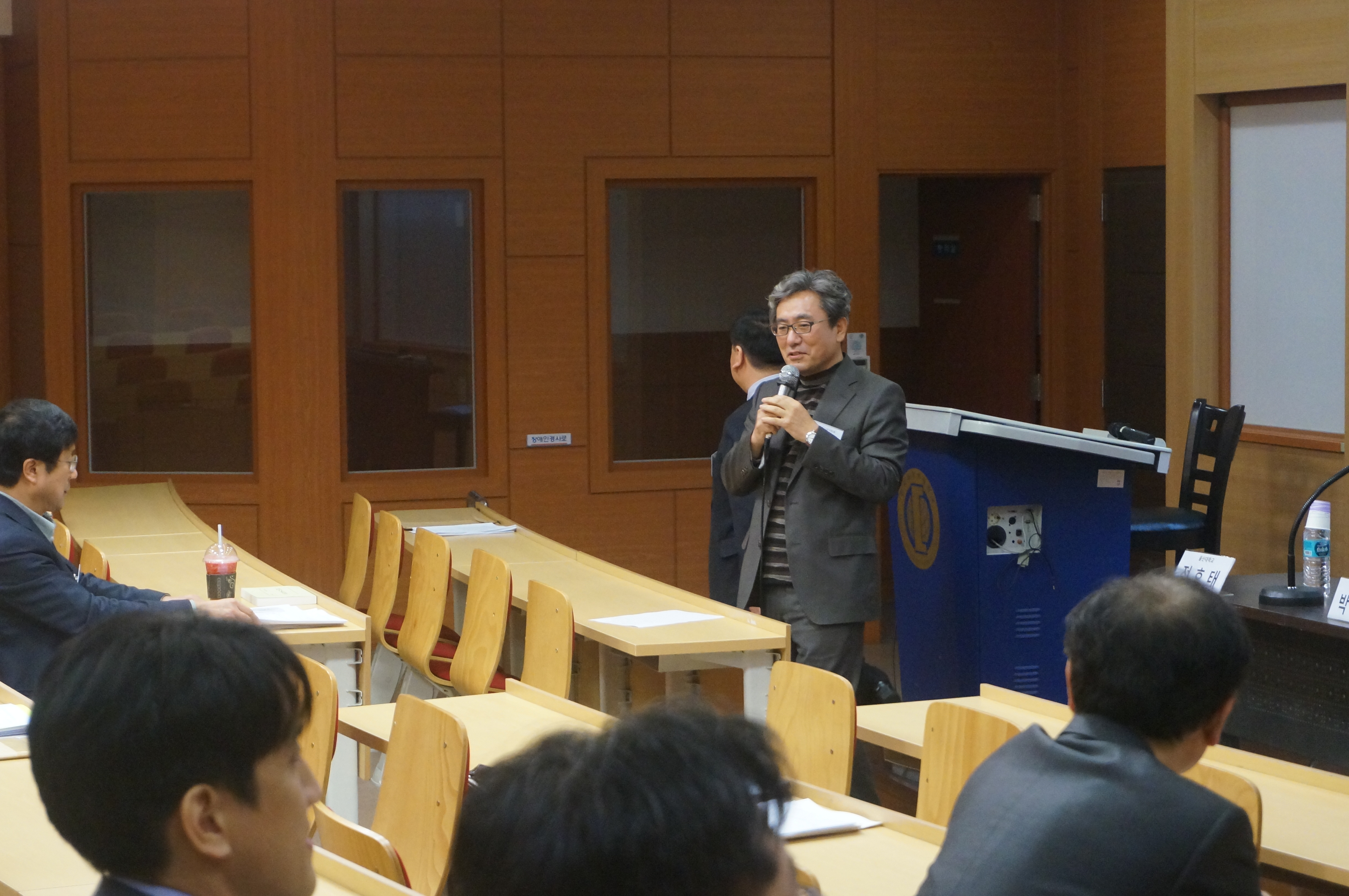2015년 4월 11일 토요일 한국외국어대학교에서 열린 제143회 정기발표회 때 이강래 회장님의 인사 모습입니다.